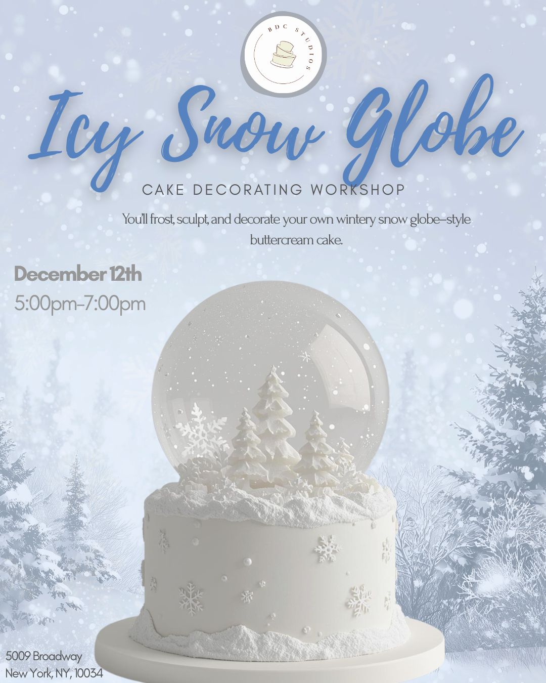 Join us for a fun evening, beginner-friendly class where you’ll create a magical snow-globe–themed cake using buttercream techniques. No experience needed—just come ready to learn, decorate, and enjoy a winter-wonderland treat!